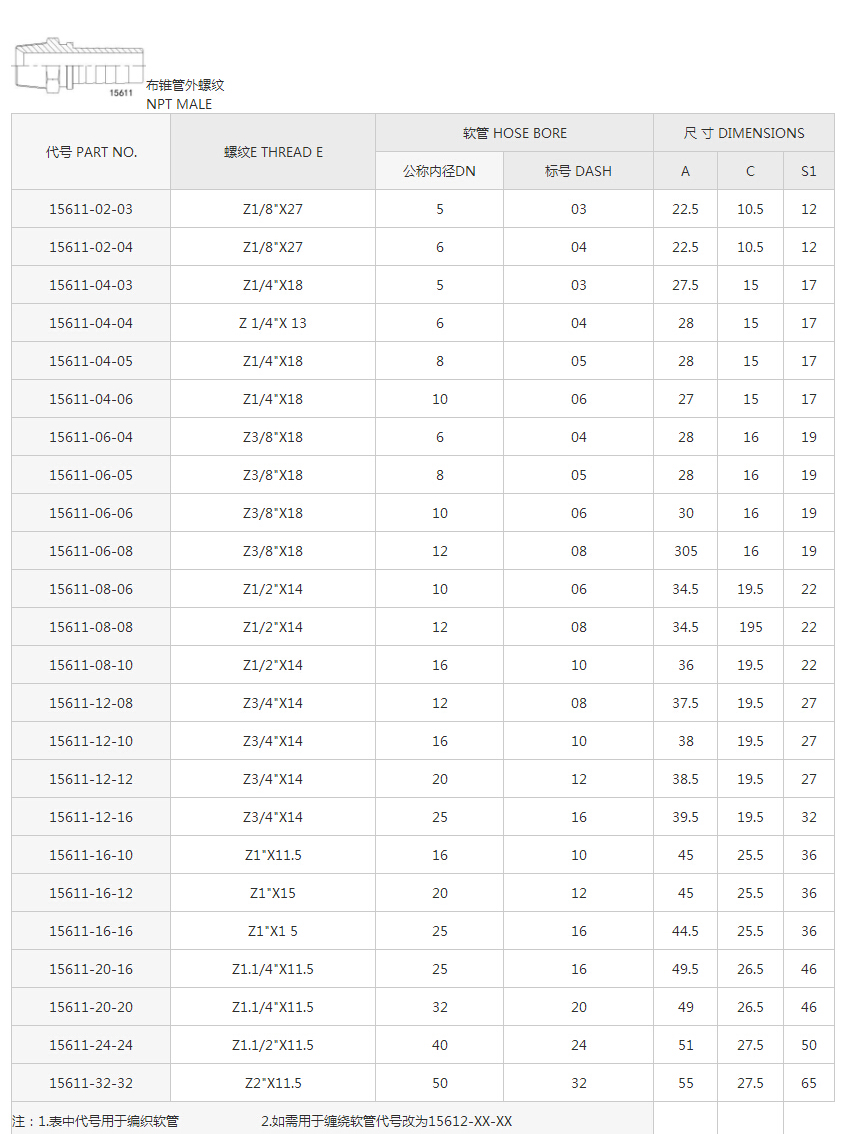 NPT布錐管外螺紋15611系列